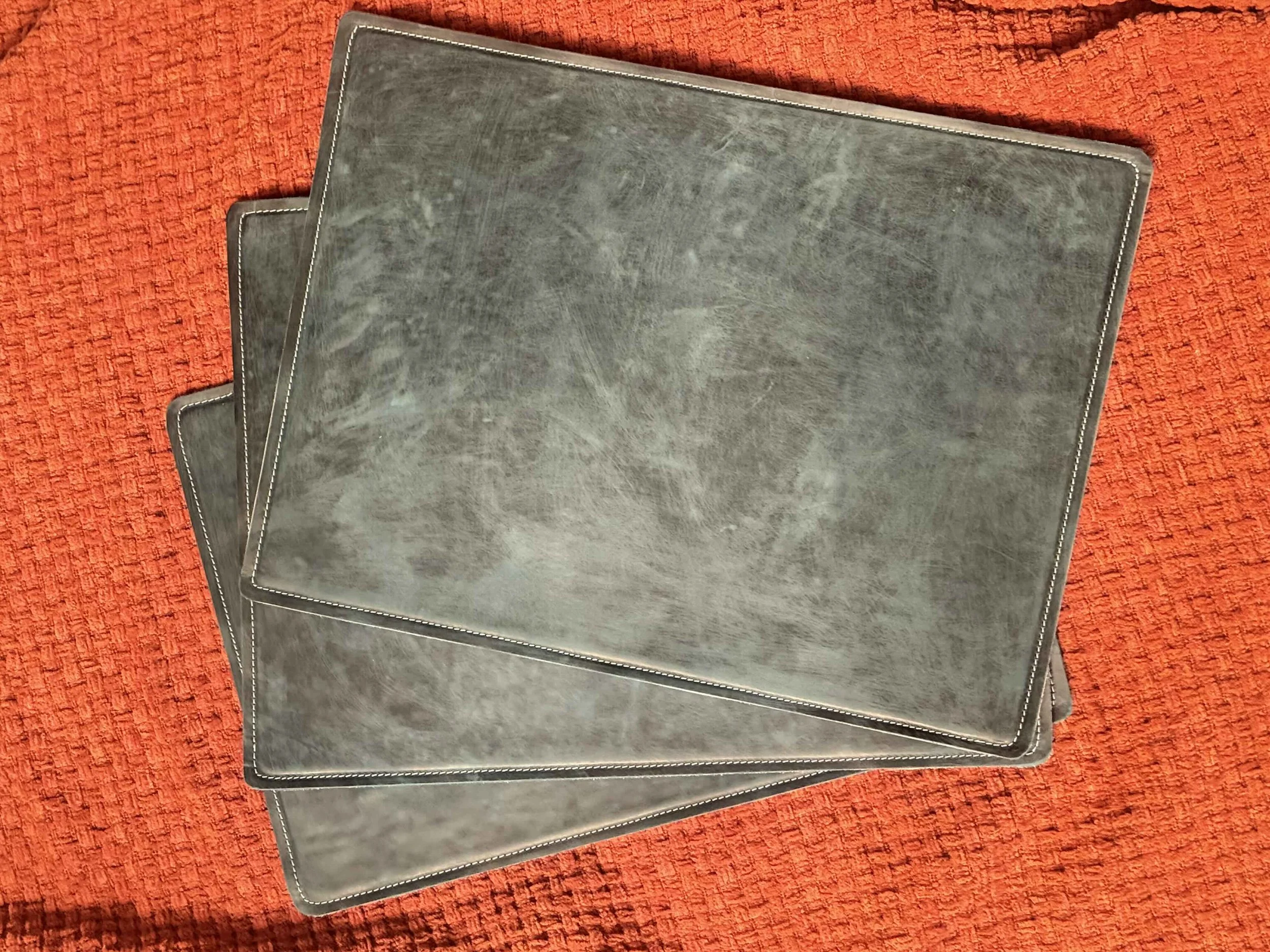 After taking delivery of a previous commission, our client asked us to create a set of leather mats to use in their office space to soften surfaces and increase visual interest. We made these out of a rustic grey leather to complement his interior decor, and added structure to help them maintain their sharp looks for years. In addition to improving the look and feel of the room, these mats helped deaden reflected sound from hard surfaces that could decrease audio quality when our client took calls from his desk.